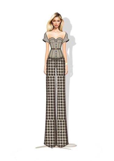 Inspired by heritage tailoring and timeless luxury codes, with houndstooth fabric as a symbol of classic elegance reinterpreted for the modern, confident woman.