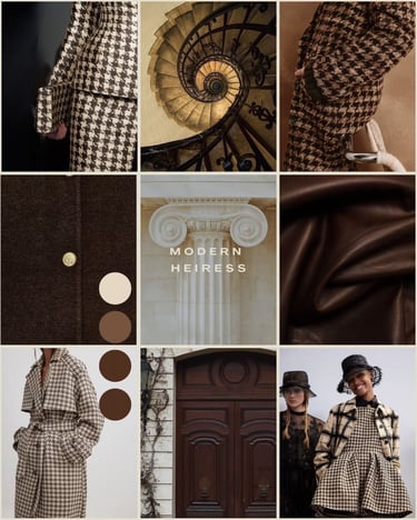 Modern Heiress reimagines classic tailoring and heritage patterns through a contemporary lens, expressing quiet power, elegance, and confident femininity.